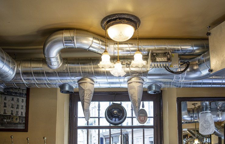 Siendo el establecimiento muy pequeño, contar con “el aire más puro de París” era fundamental, de ahí el extraño sistema de aireación diseñado por los especialistas, con reminiscencias industriales y un poco futuristas.