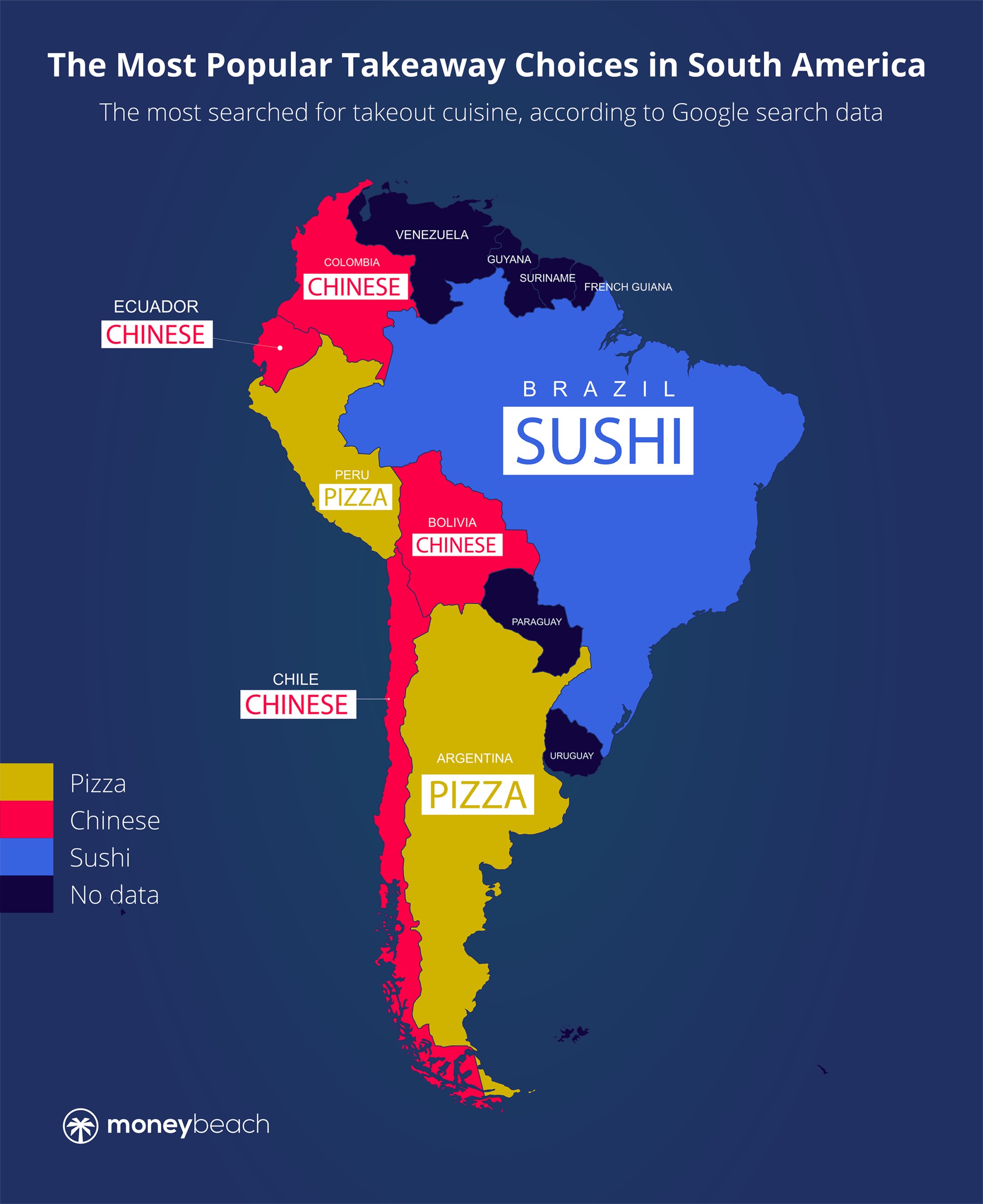 Se acaba de publicar un mapa de América del Sur con los pedidos que más se entregan a domicilio.