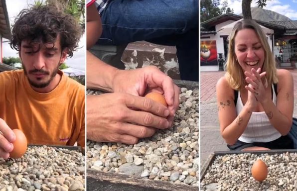 Una pareja argentina viajó al lugar del mundo para comprobar si es cierto que allí un huevo se para arriba de un clavo