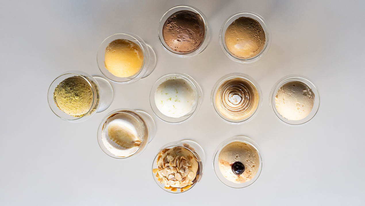 Los gustos recorren los imprescindibles de siempre: dulce de leche, chocolate amargo, sambayón, vainilla, crema Jersey, limón, frutilla y damasco. Y a eso le suman una selección de cremas secas como pistacho, almendra y avellana, todas trabajadas con materia prima de calidad y una textura densa, fresca y sin excesos de azúcar.