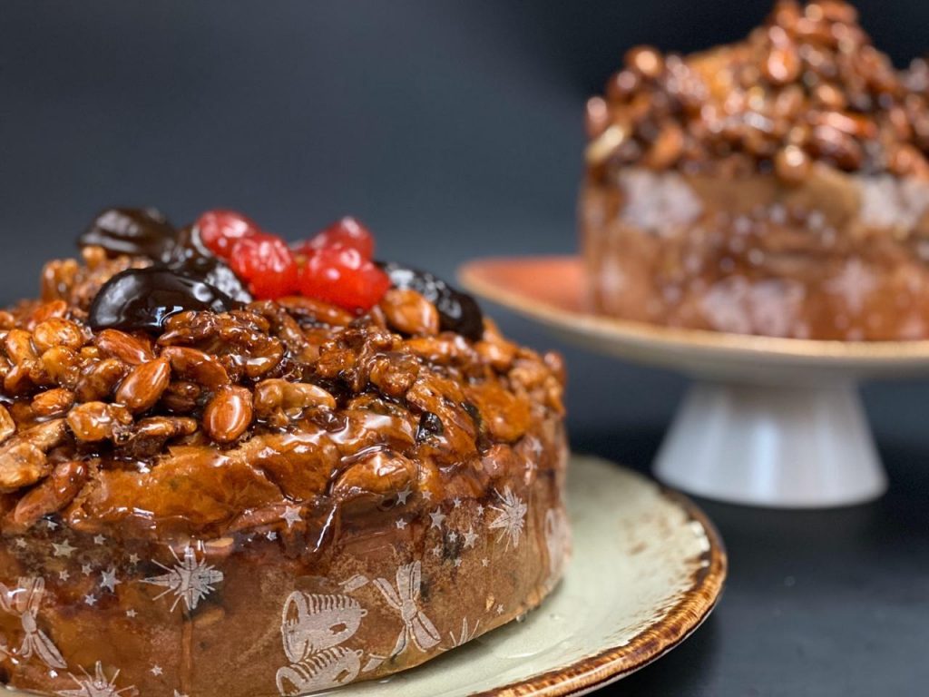 Por su parte, Atelier Fuerza lanzó su preventa, una de las más esperadas del circuito artesanal porteño. Este año ofrecen dos versiones de un kilo, ambas bañadas en craquelín de harina de almendras: la de frutos secos, cargada con cascaritas de naranja confitada, castañas de cajú, almendras, nuez pecán y pasas de uva; y la de chocolate y naranja, que combina chocolate amargo, nibs de cacao y naranjas.