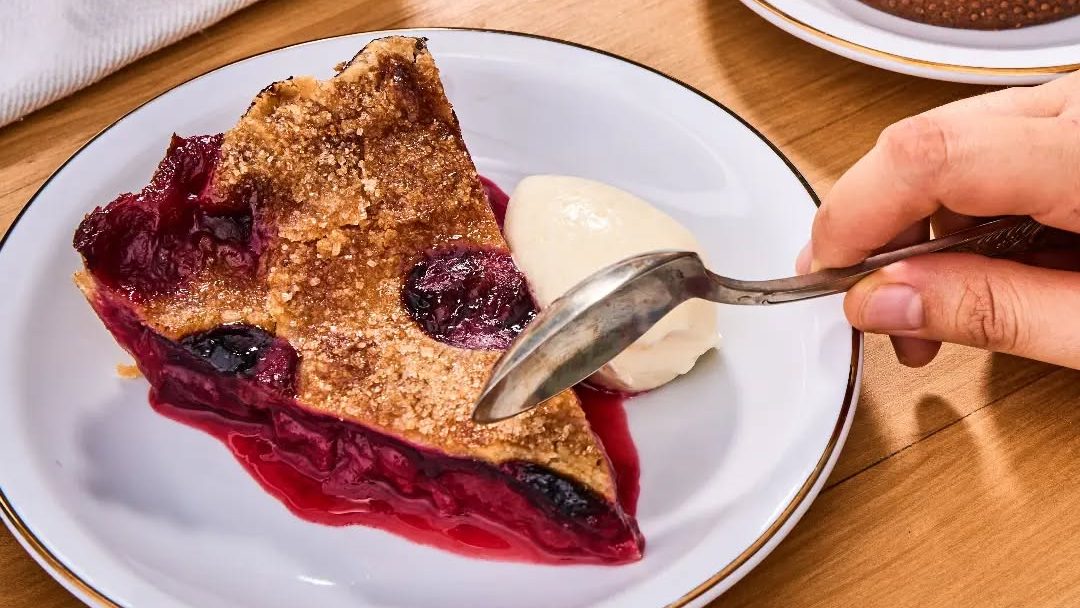 En Rosie Café, la estrella es una tarta tibia de frutas que funciona como carta de presentación: un pie al estilo norteamericano, con masa tipo hojaldrada con mucha manteca, relleno de frutas de estación y una quenelle de crema que llega apenas montada. El toque final se lo da el azúcar rubia que le esparcen por encima, infusionada con chaucha de vainilla.