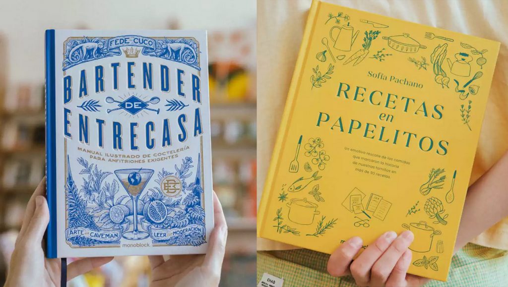 Bartender de Entrecasa, de Fede Cuco, es un manual para enamorarse del oficio de la coctelería: anécdotas, historia, técnicas y más de 50 recetas para armar una barra casera con espíritu viajero. Y Recetas en Papelitos, de Sofía Pachano, propone un viaje íntimo y emotivo por 17 cocinas familiares, rescatando recetas de distintas colectividades y secretos transmitidos de generación en generación.