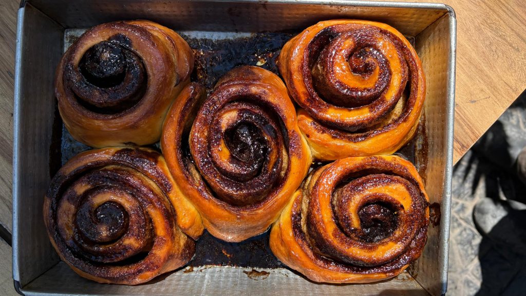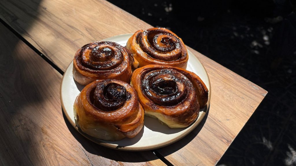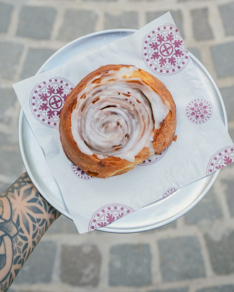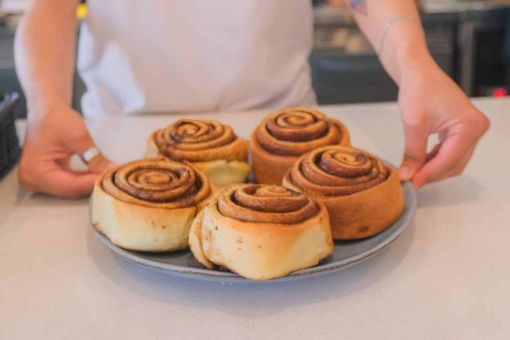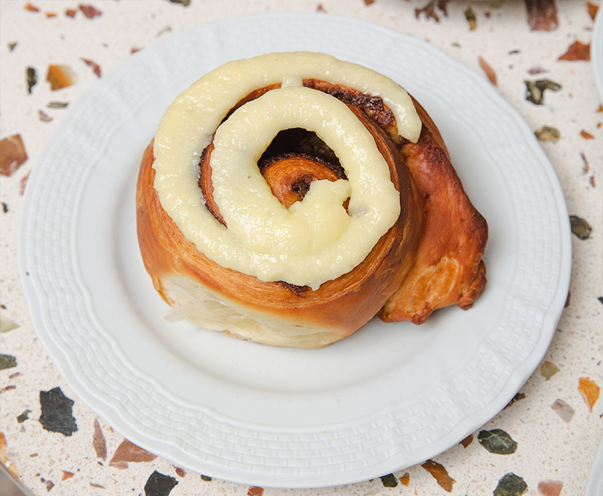 Sus rolls están inspirados en la versión neoyorquina de los mismos. Se fermentan dentro de un aro durante 4 horas y luego se hornean durante 20 minutos. El relleno, delicioso, está preparado con una mezcla a base de canela y manteca.