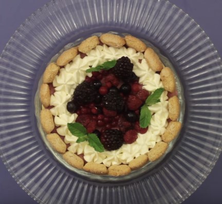 Pastelería Charlotte de frutos rojos By Cucinare diciembre 14, 2017 Una irresistible charlotte de frutos rojos es la mejor opción para el postre o merienda. Ingredientes 2 claras de huevo. 225 g de azúcar. 400 g de crema. 450 g de pulpa de frutos rojos. Almíbar 100 cc de agua. 100 g de azúcar. Un pionono. 17 vainillas. Procedimiento 1Batir dos claras de huevo con azúcar. Reservar. 2En un bowl, poner la crema, 100 g de azúcar y la pulpa de frutos rojos. Mezclar. 3Sumar las claras batidas a esta preparación. Reservar. 4En una olla preparar el almíbar con 100 cc de agua y 100 g de azúcar. 5Forrar un molde con forma de disco con papel film. 6En una placa, colocar masa de pionono como base del disco. 7Pintar esa base con el almíbar. 8Cubrir los lados del molde con las vainillas. 9Volcar la preparación en el centro y llevar a heladera. 10Decorar con crema chantilly, frutos rojos y hojas de menta. aguaAzúcarCremafrutos rojosHuevospiononoPostresTortasVainilla 00:00 0 Comentarios Cancelar respuestaComentarios ...All fields are required to submit a review.Nombre ... Email ...