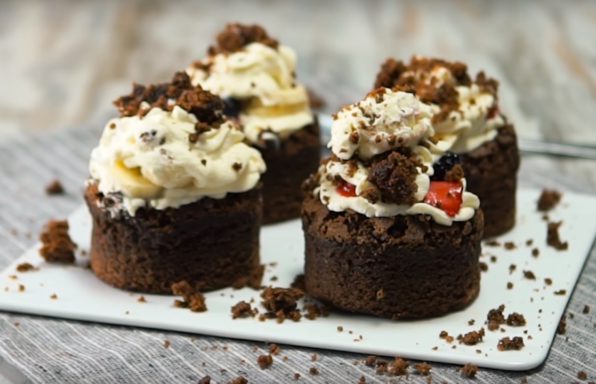 Brownie con frutas y crema